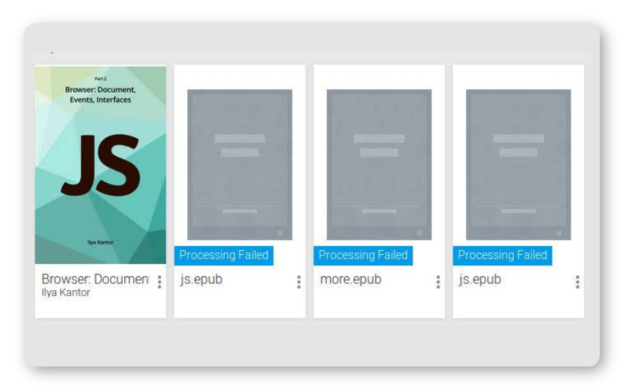 Pada suatu hari saya pernah mendapatkan pesan Error: Processing Failed ketika saya mengupload buku tersebut. Yang pasti ada struktur ebook yang gagal dibaca oleh GPB. Tapi saya ga tau struktur kode xml apa yang bikin gagal diuploadnya.